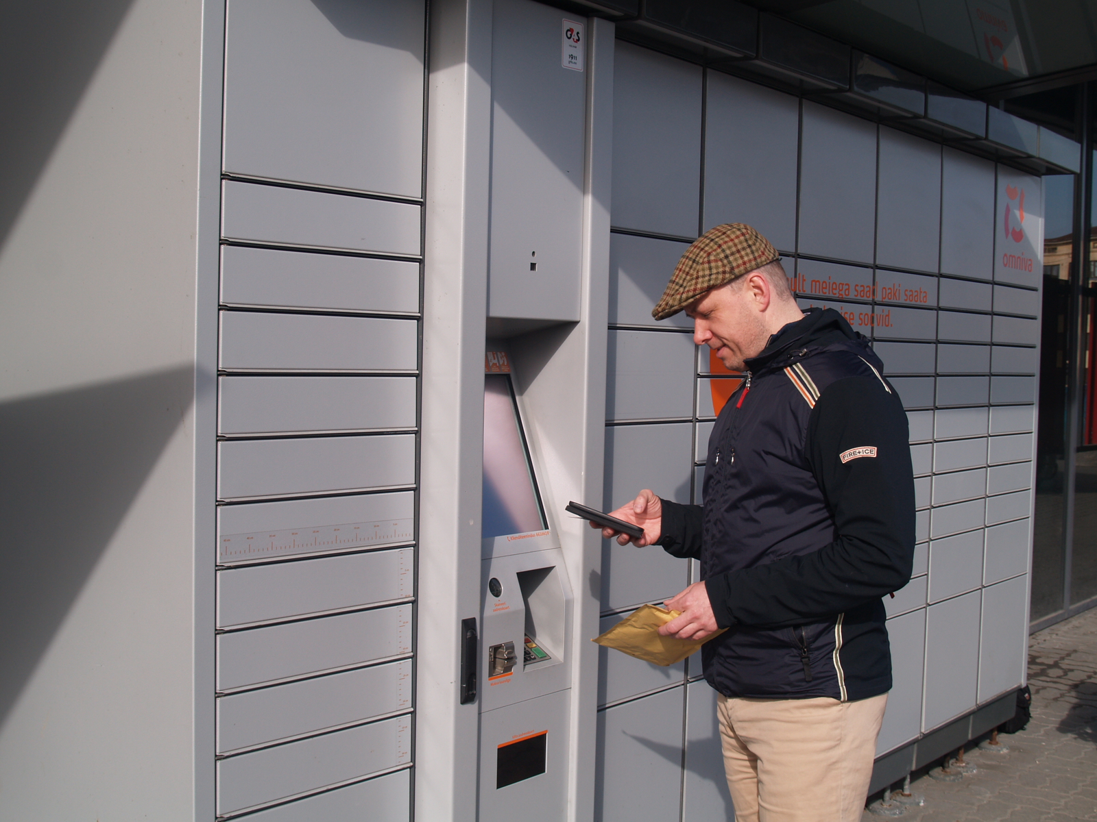 1. Mine sulle sobiva Omniva pakiautomaadi juurde ja otsi SMSist või e-mailist välja sulle saadetud pakikood.