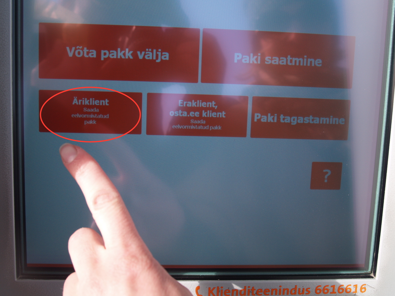 2. NB! Omniva pakiautomaadi menüüs vali „Äriklient“, kuna sa saadad paki teele parcelfellows.com lepinguga.
